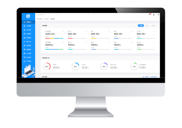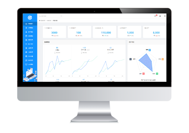 用于对系统中各项数据进行统计分析,包括额统计、客户数量统计等能。